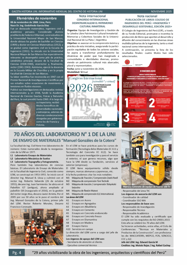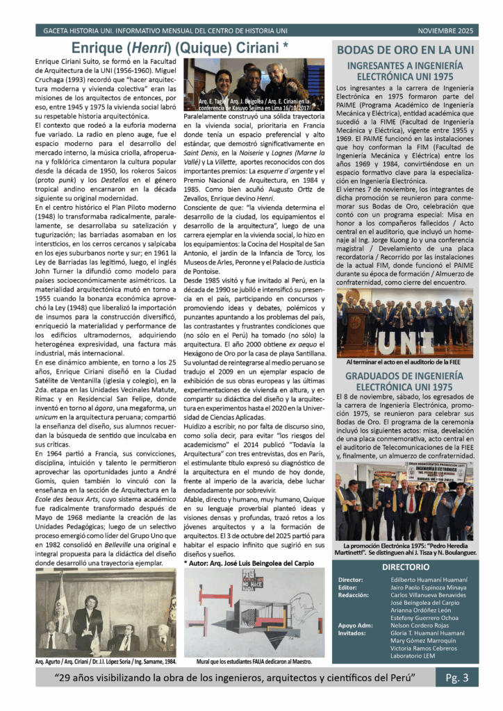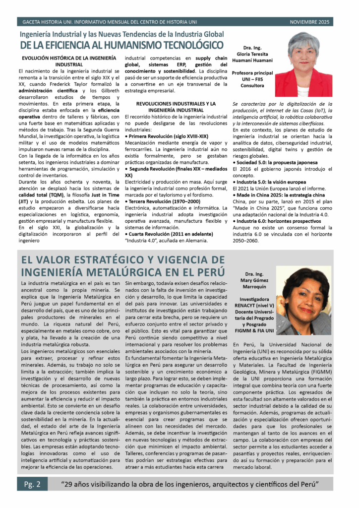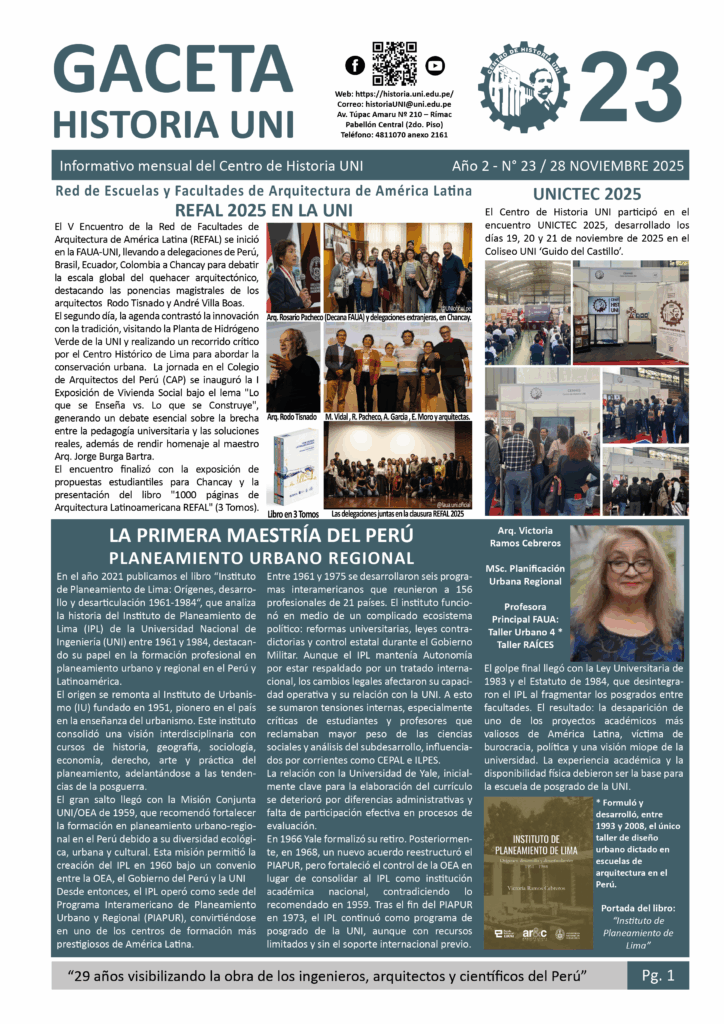 GACETA HISTORIA UNI. Informativo mensual del Centro de Historia UNI. Año 2 – N° 23 / NOVIEMBRE 2025