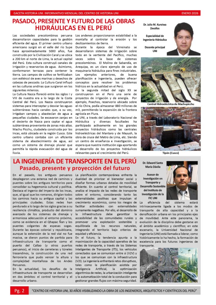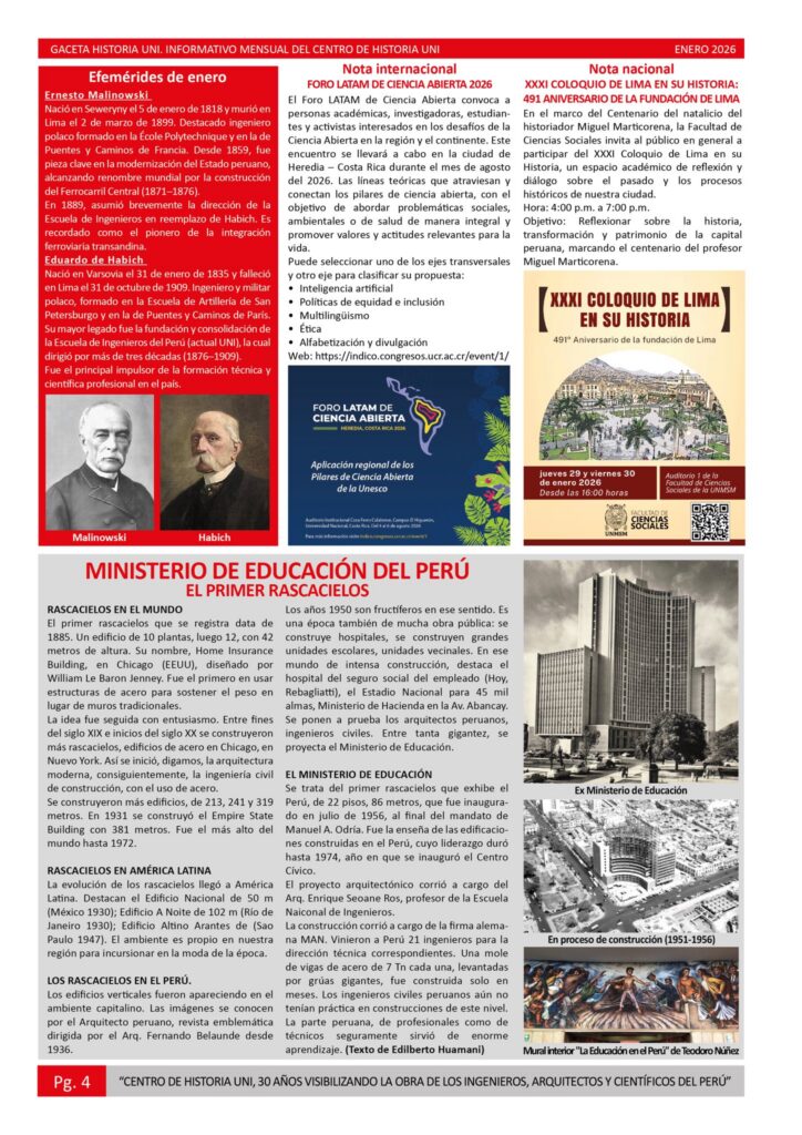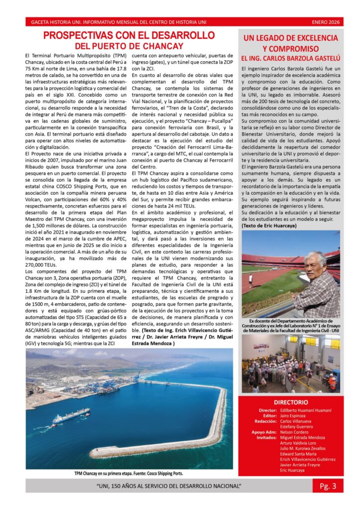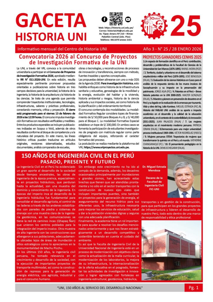 GACETA HISTORIA UNI. Informativo mensual del Centro de Historia UNI. Año 3 – N° 25 / ENERO 2026